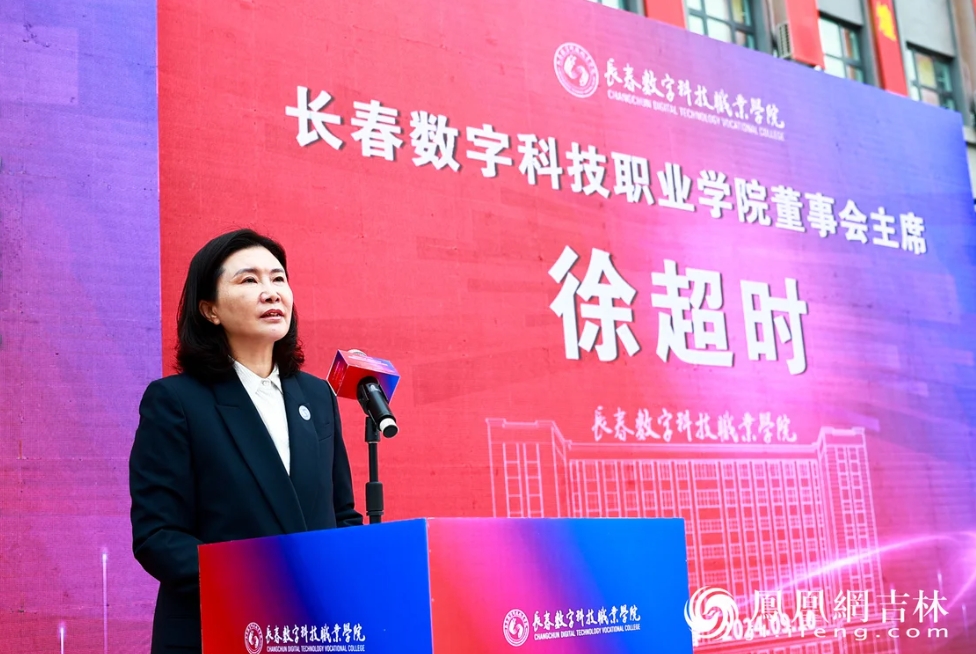 云程发轫,万里可期。长春数字科技职业学院董事会主席徐超时,在致辞中深情回顾了学校筹备的艰辛与努力,并对学校的未来发展充满信心,她提出以“数智立教、数智立校、数智立人”为办学理念,致力于培养适应数字经济时代需求的高素质技术技能人才。一是联合多方力量开展“吉林数字匠谷”建设,开展市域产教融合联合体建设“下沉一级”体制机制改革探索;